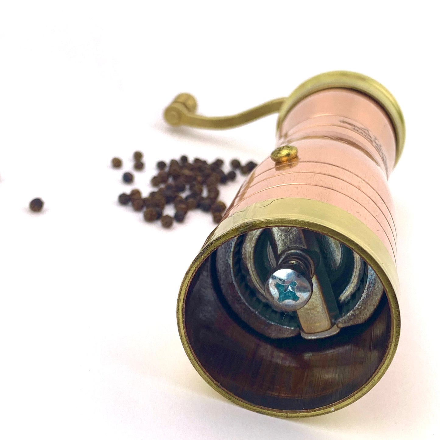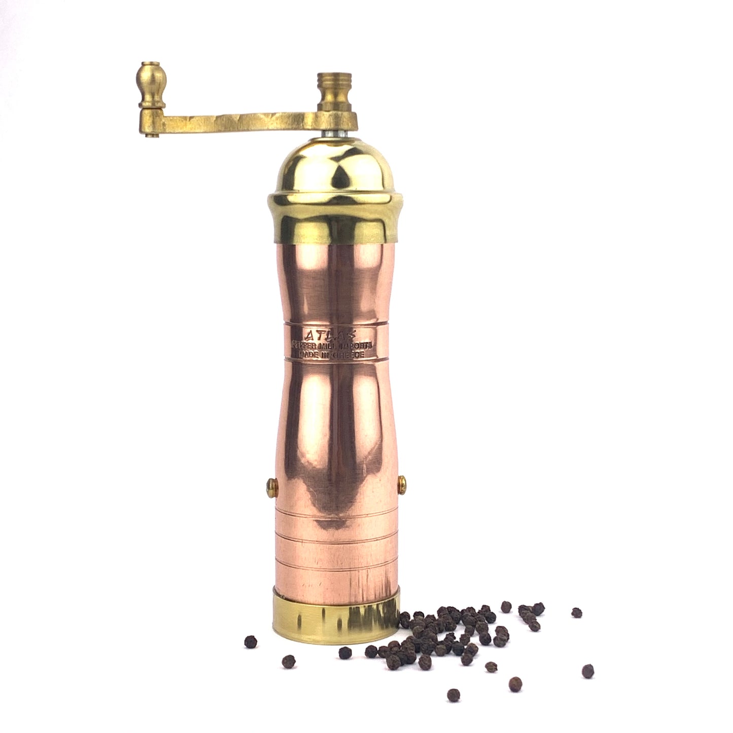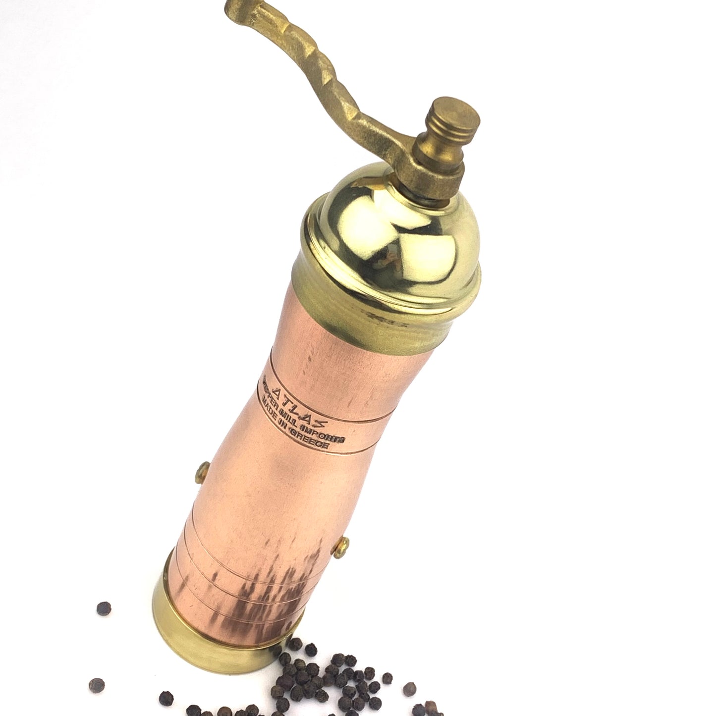 These excellent copper and brass pepper mills were originally designed in 1977 by 2 mechanical engineers in Greece, based on a design that dated back hundreds of years.