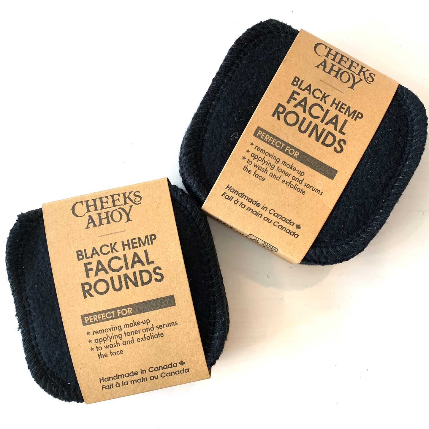Set of 6 - Hemp is a very eco-friendly fabric! Fast-growing, requires little water and no pesticides, and creates a durable fabric. Organic cotton is blended to add some softness to these black facial rounds.