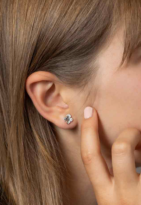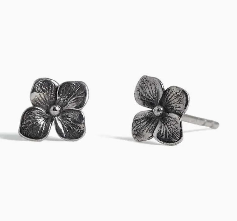 Measuring 9 x 7 mm, these delicate hydrangea blossom stud earrings add a lovely and subtle floral touch.