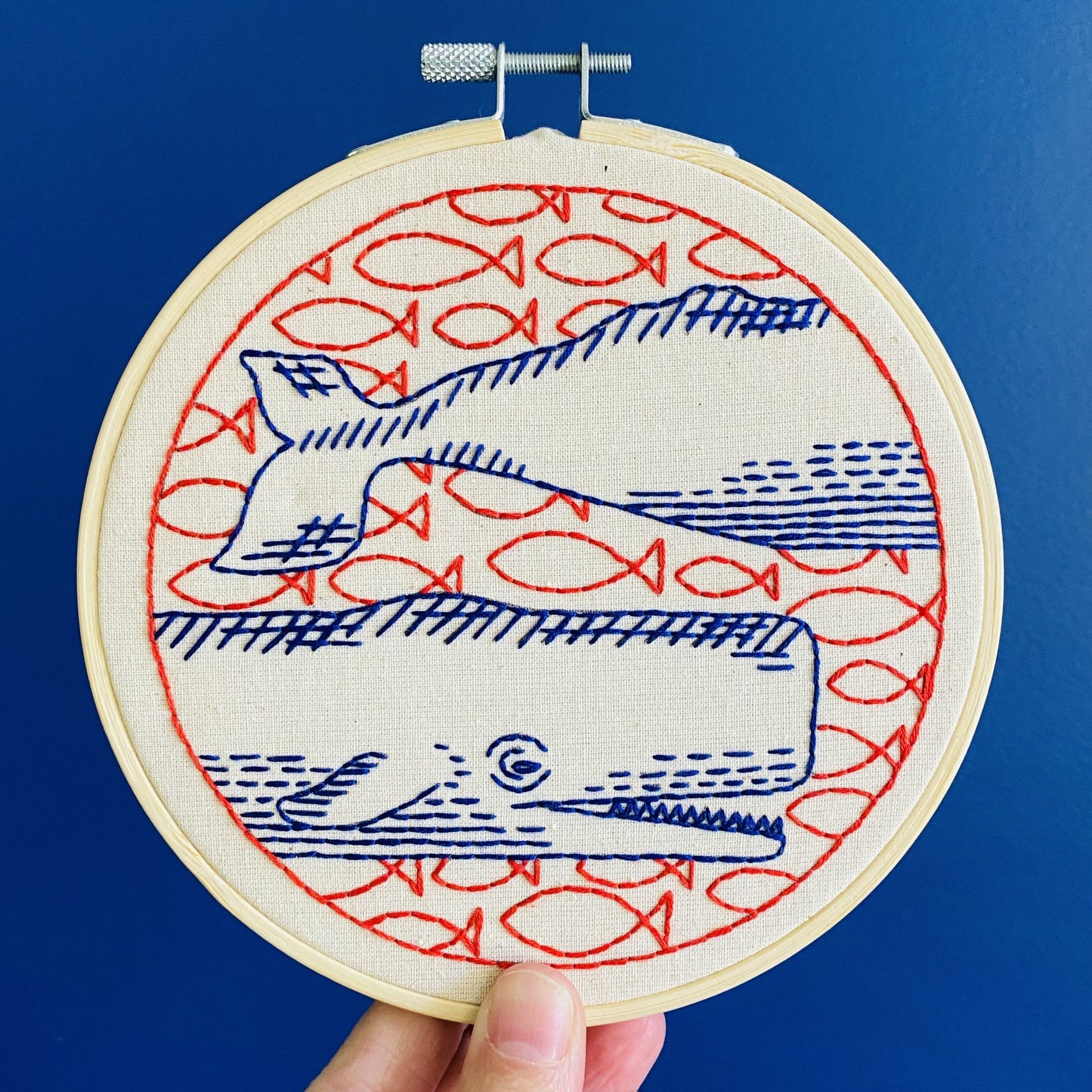 This embroidery kit was inspired by the incredible Sperm Whale - they can hold their breath for an hour and dive to more than 3,000 meters! You can add or change up the palette with your own floss to create your own unique interpretation.