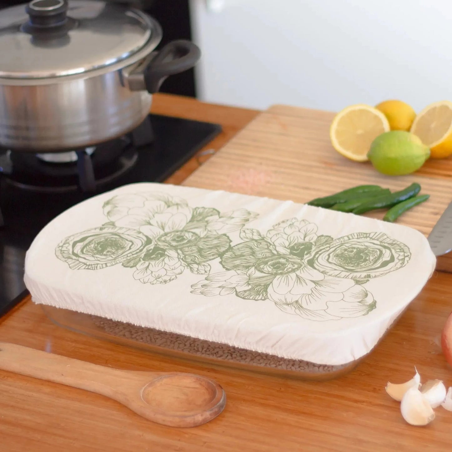 This reusable, organic cotton dish cover is an easy, eco-friendly switch from plastic wrap or foil. Made of breathable fabric, so there's no condensation from hot foods, and no wilting of salads and greens.