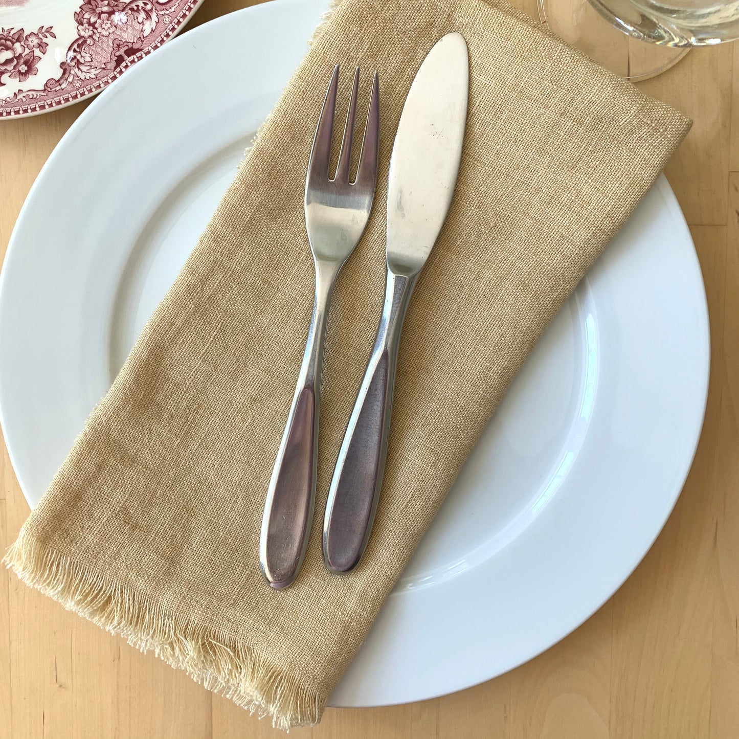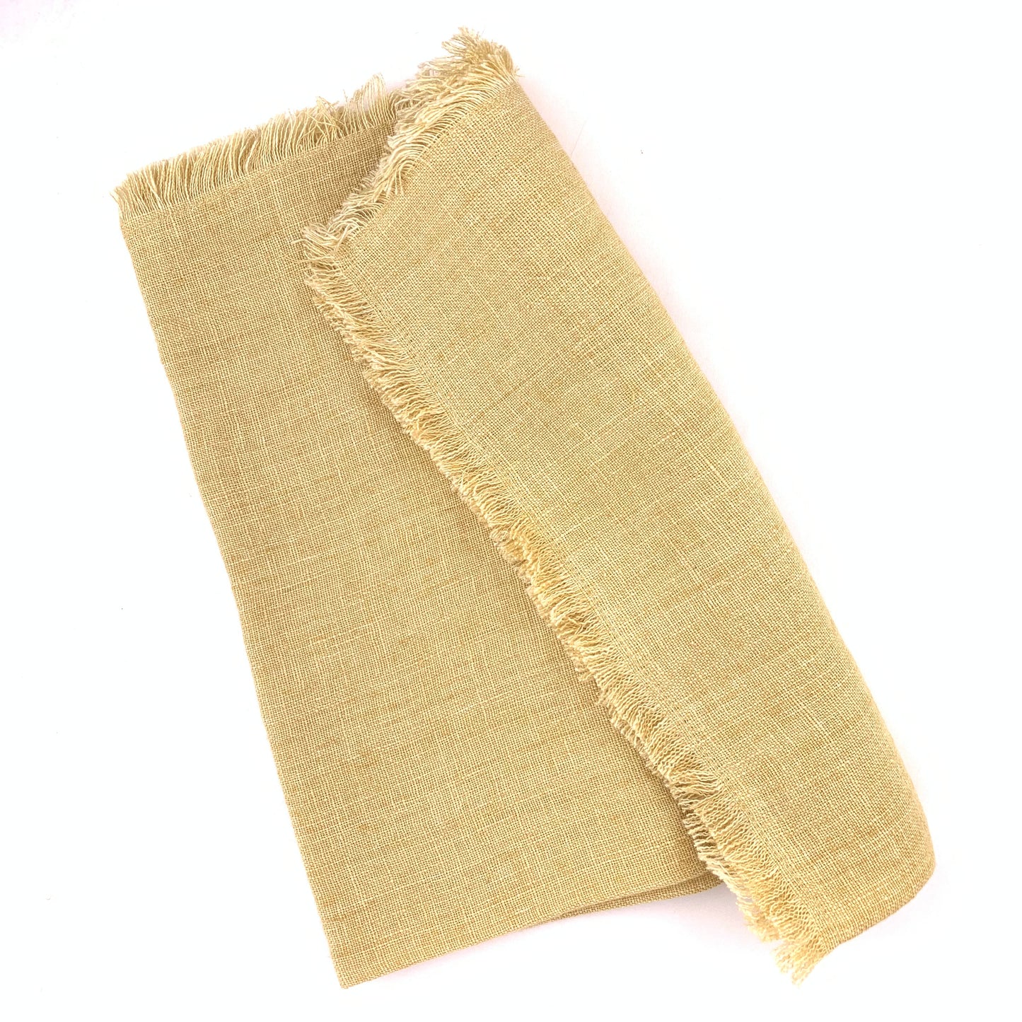 Each napkin features a soft, frayed edge and is 20 inches x 20 inches. Machine washable in cold water, air dry.