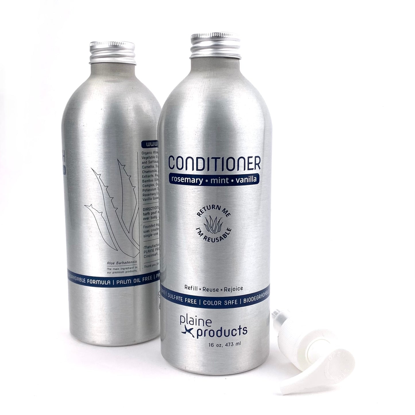 Each product comes in a recyclable aluminum bottle, choose a reusable pump if it's your first bottle (yes, a plastic pump, but for now it's the best option).