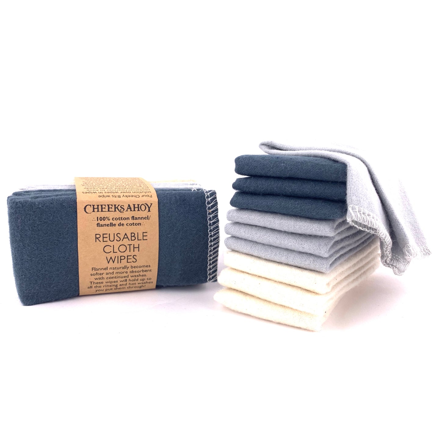 Reusable cloth wipes are the perfect size to keep in your pocket, diaper bag, backpack or purse to have on hand for wiping just about anything. They are 100% soft flannel, and can be washed hundreds of times!