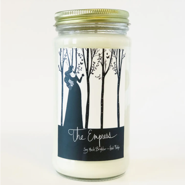 The Tarot series is the collaboration of Heidi Phelps and Soy Much Brighter. The blends are on the softer side, meant to ease a subtle aroma into your space, as you pull your cards. Use each scent to enhance, restore, and reflect.